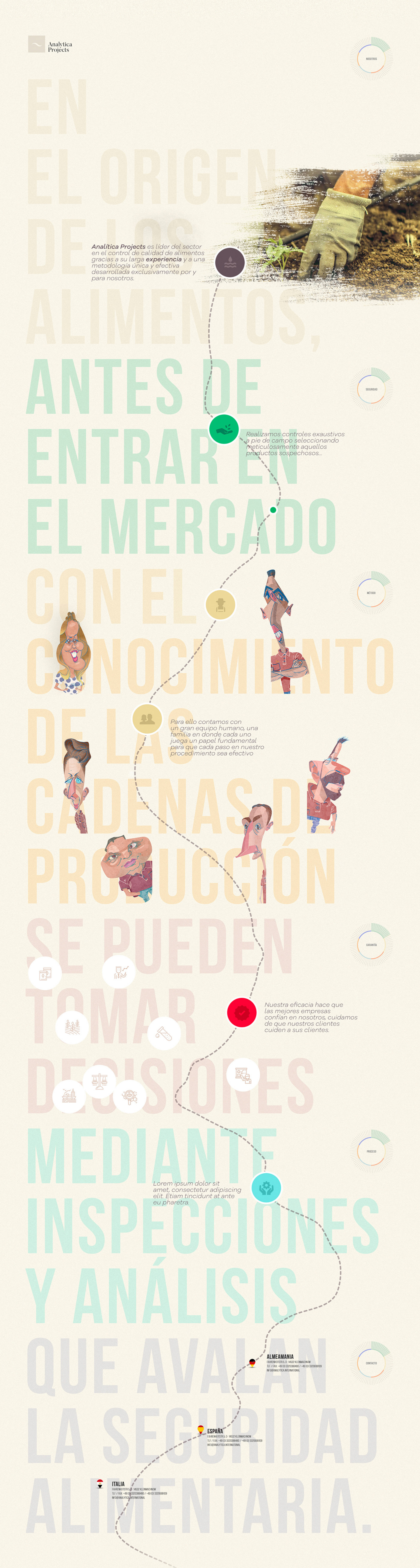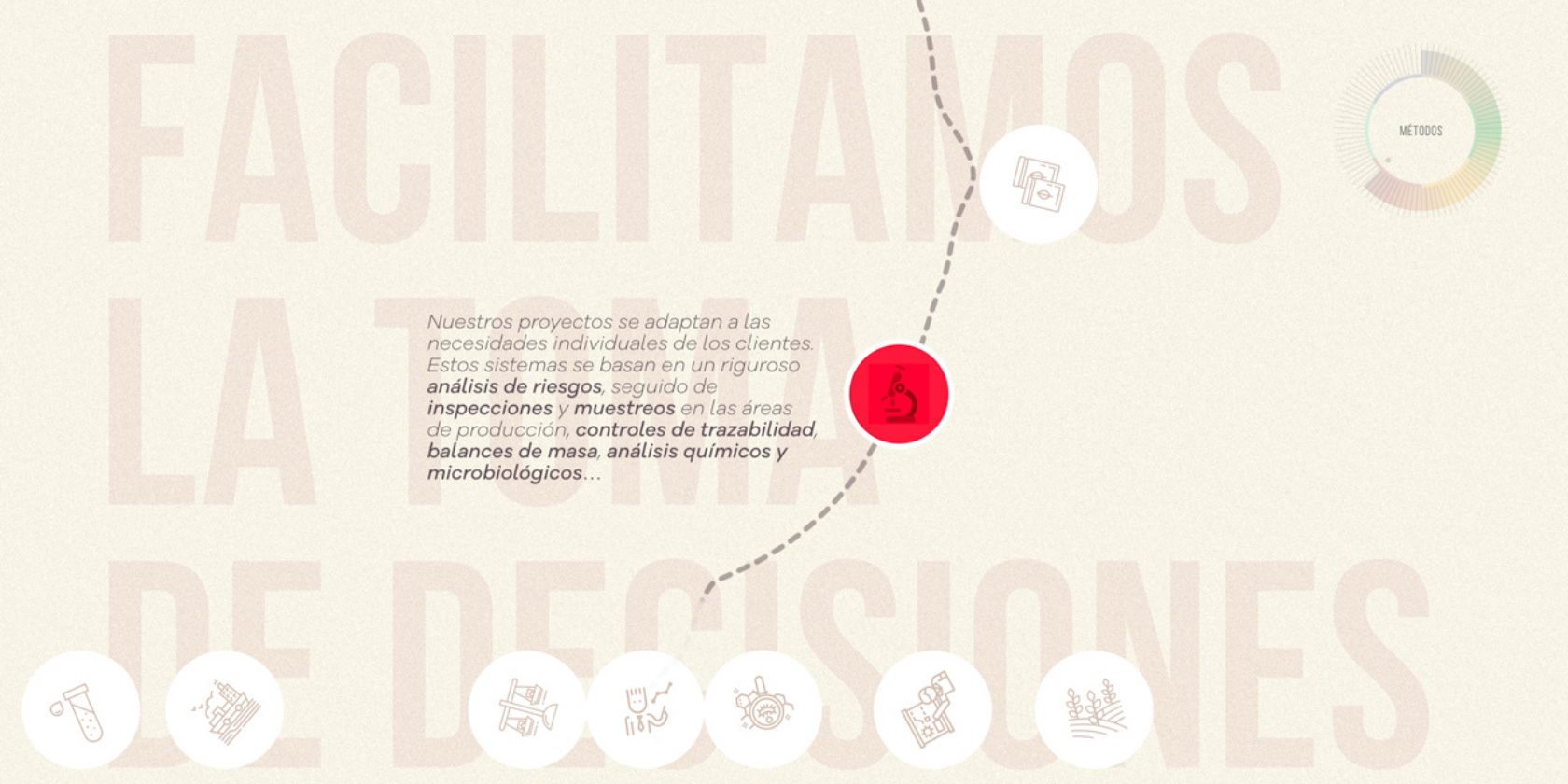 Our challenge was to communicate Analytica Projects’ expertise in risk analysis and food safety, highlighting the value of its team and the importance of fieldwork. We designed an interactive and immersive experience that guided users through their processes, attracting clients from the food industry.