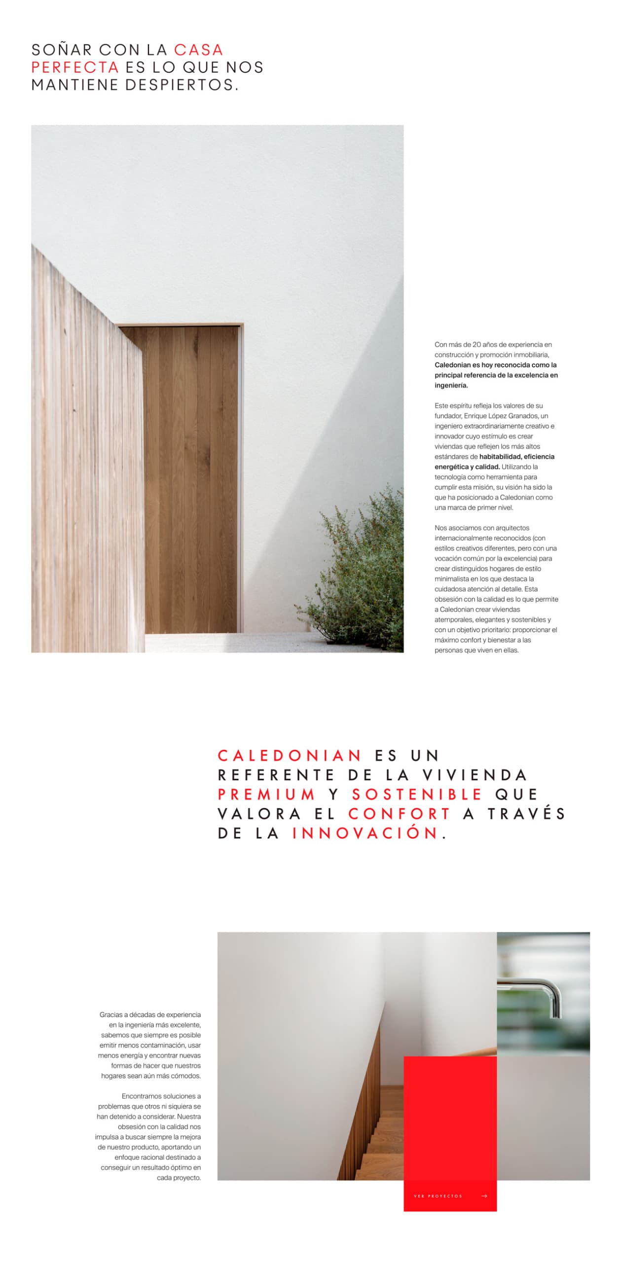 Our challenge was to go beyond a simple real estate portal and create a digital experience that captured the brand narrative and Caledonian’s unique approach to architecture. The goal was to showcase its luxury homes from an exclusive perspective, highlighting both the quality of the finishes and its innovative, creative philosophy.