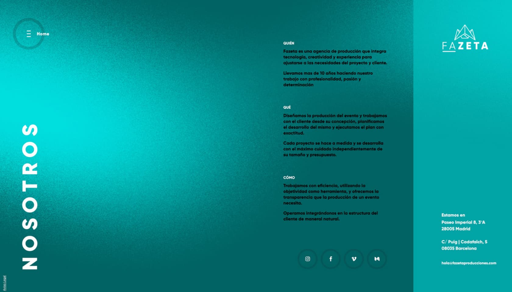 Fazeta is a production agency that combines technology, creativity, and experience to adapt to the needs of each project and client. Their work ranges from large-scale events to corporate videos, press conferences, stands, and road shows. They offer services in scenography, technical production, venue booking, equipment, and talent acquisition, designing fully customized events.