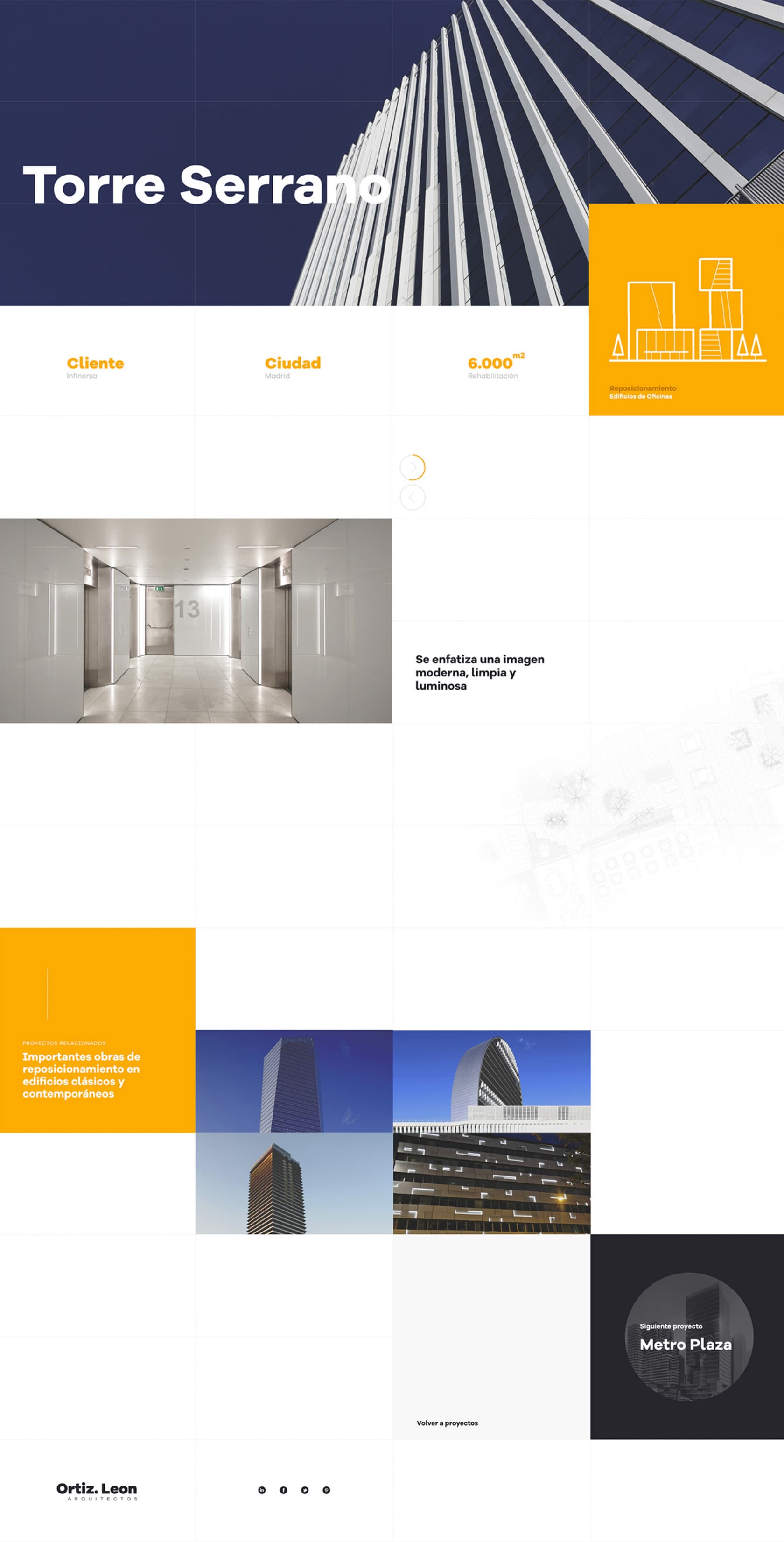 Our challenge was to reflect Ortiz León Arquitectos’ excellence, innovation, and international presence through a visually striking design. The website needed to highlight its commitment to sustainability, showcase its landmark projects and achievements since 1984, and attract private and institutional investors interested in high-level architectural projects.