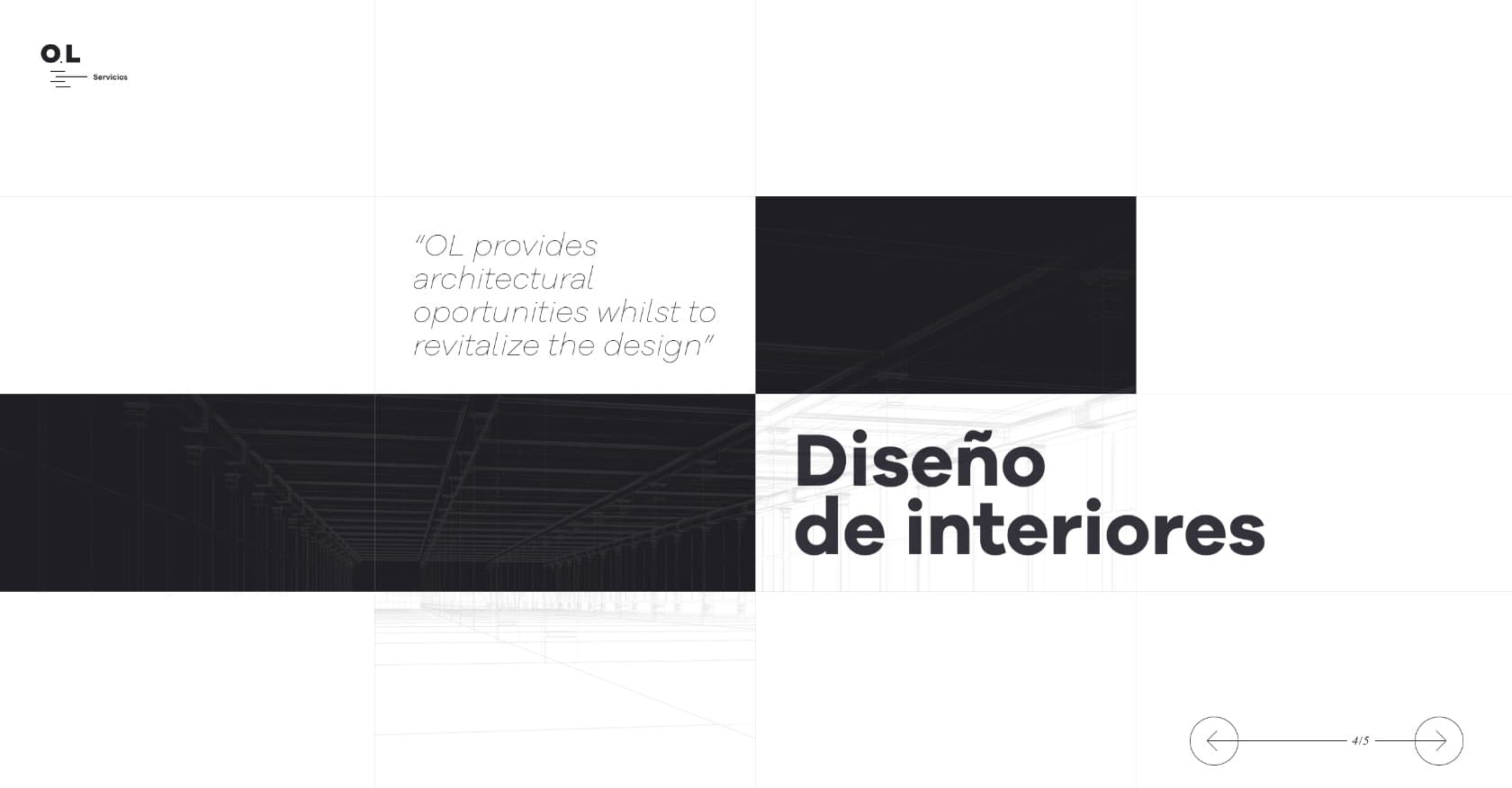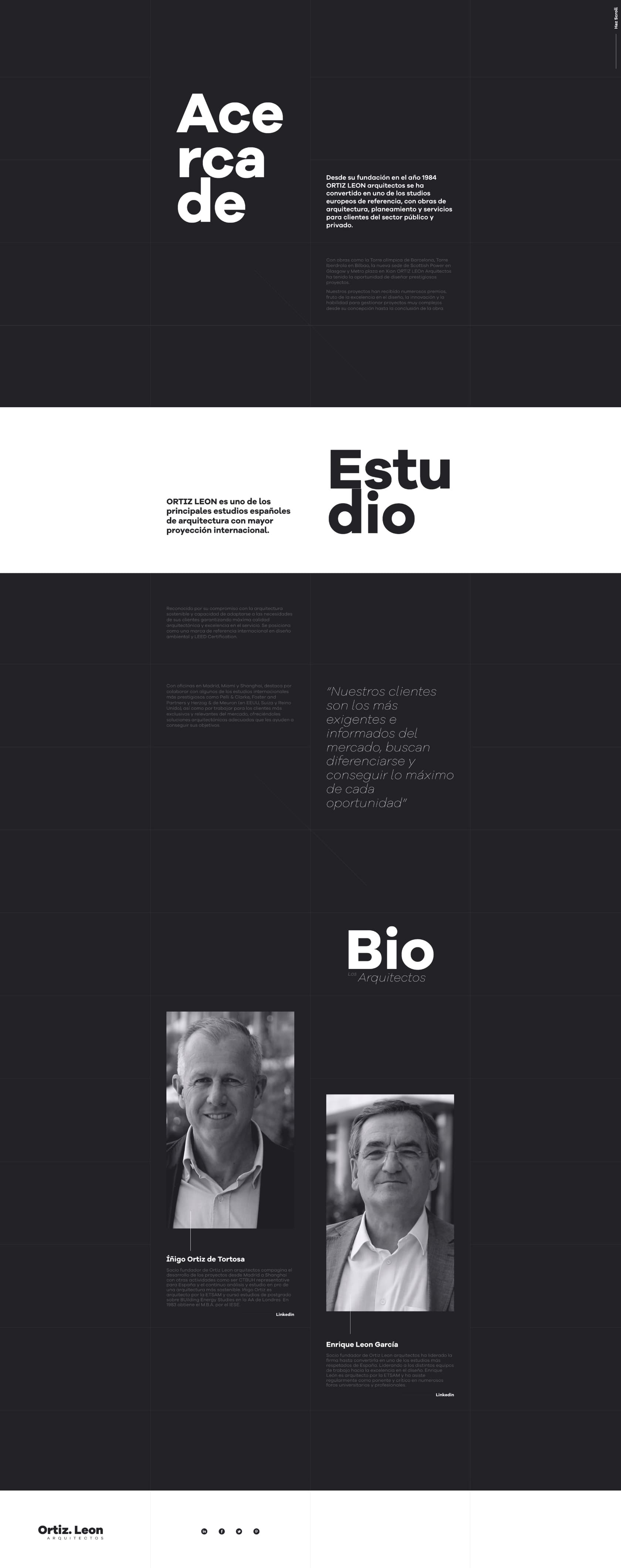 We used a grid divided into sixteen sections to structure the layout like an architectural plan, creating a minimalist and orderly design. White spaces and a well-organized content structure optimized navigation and readability.
