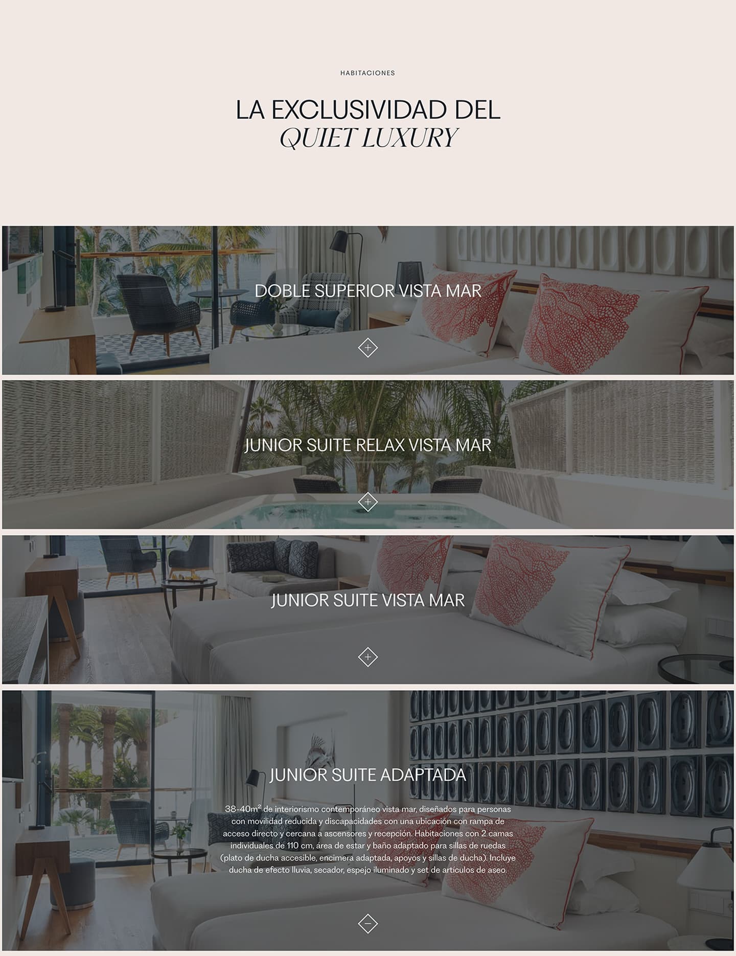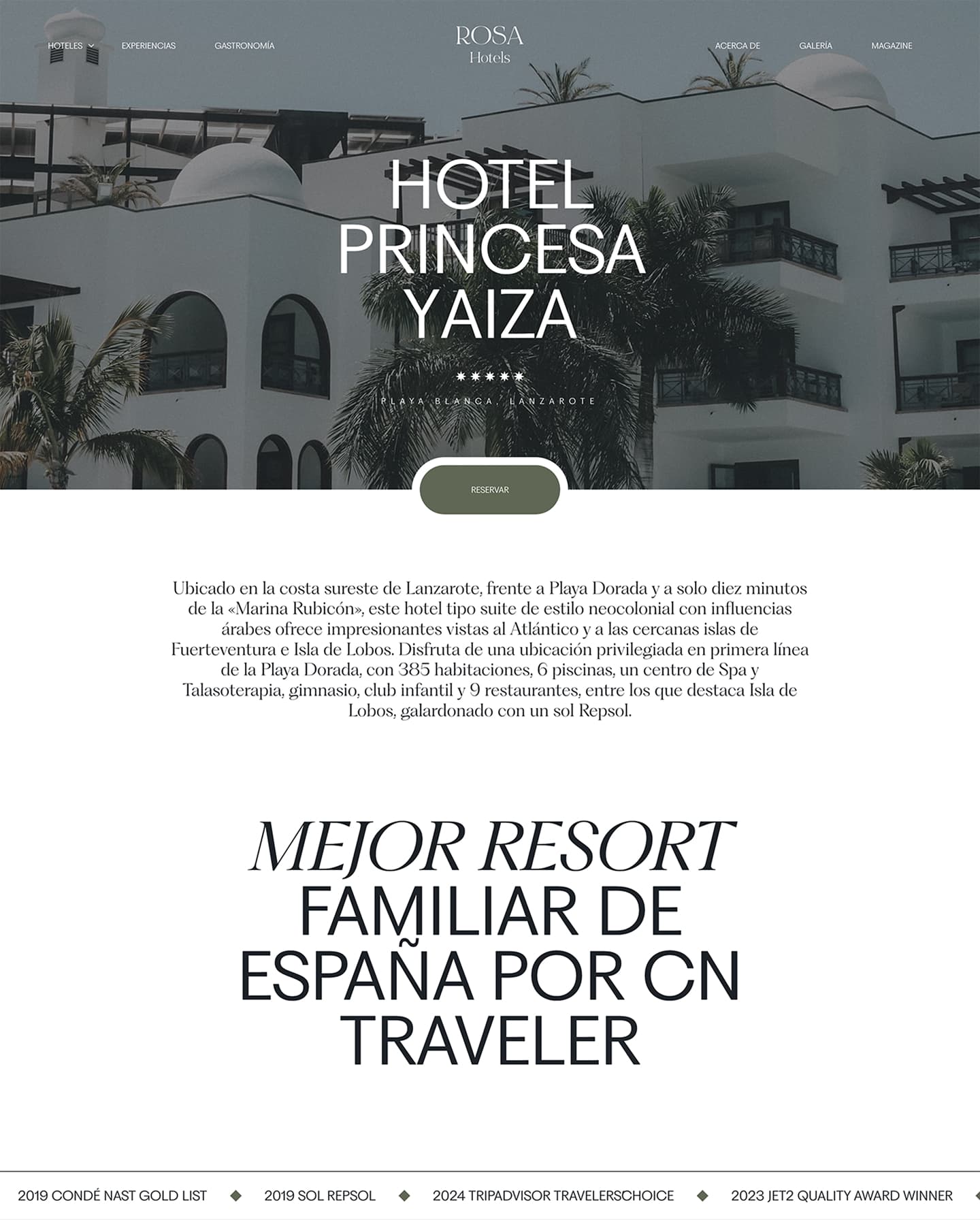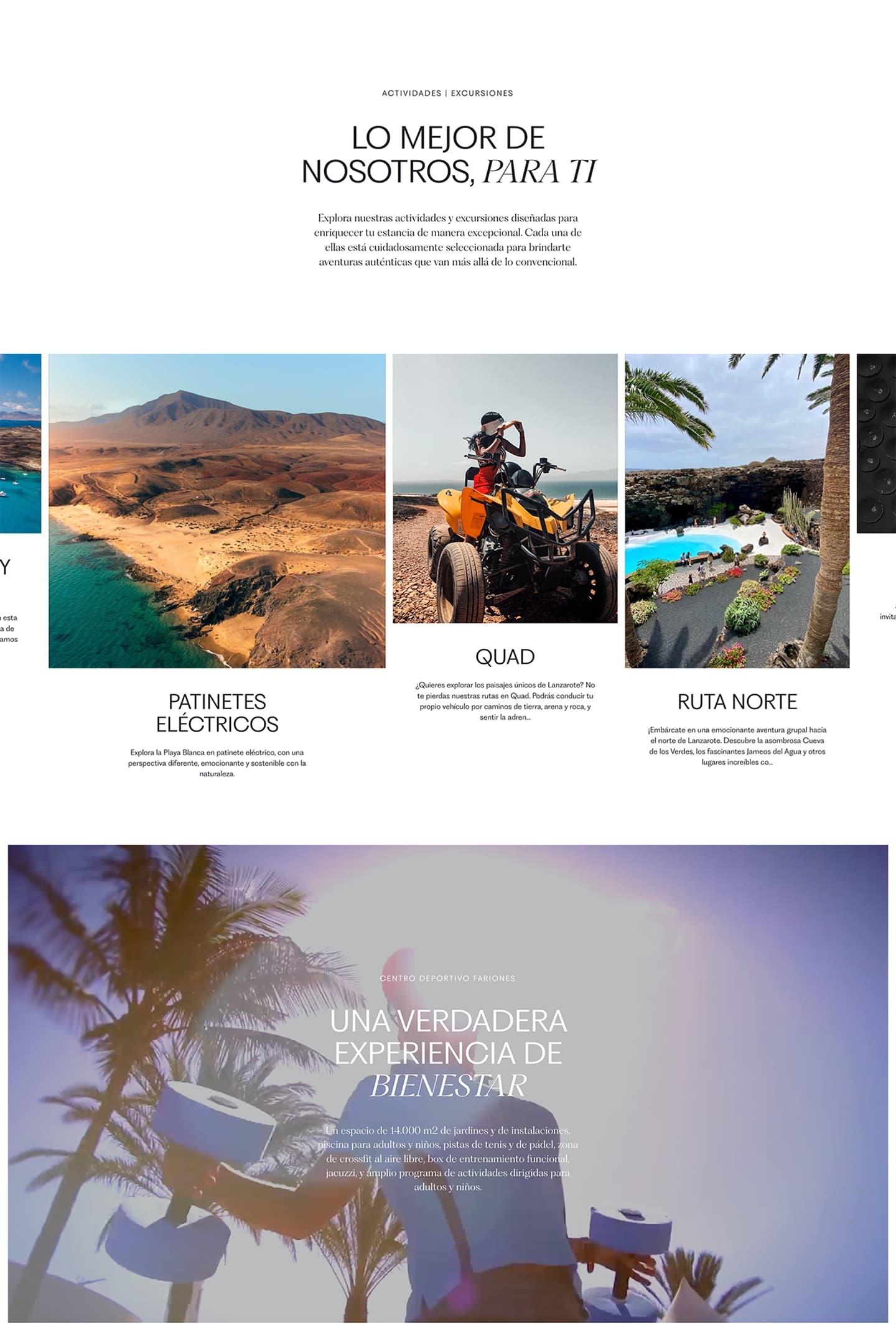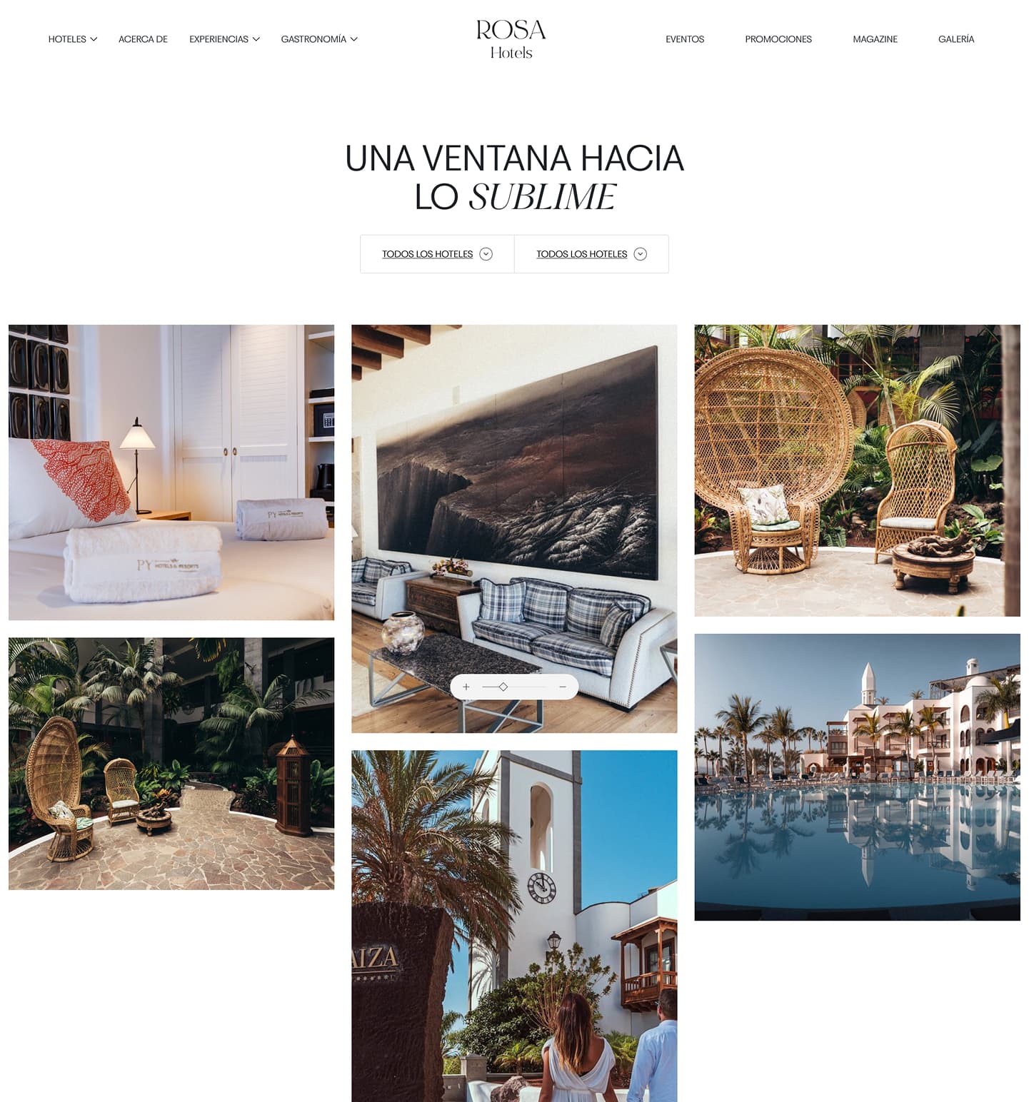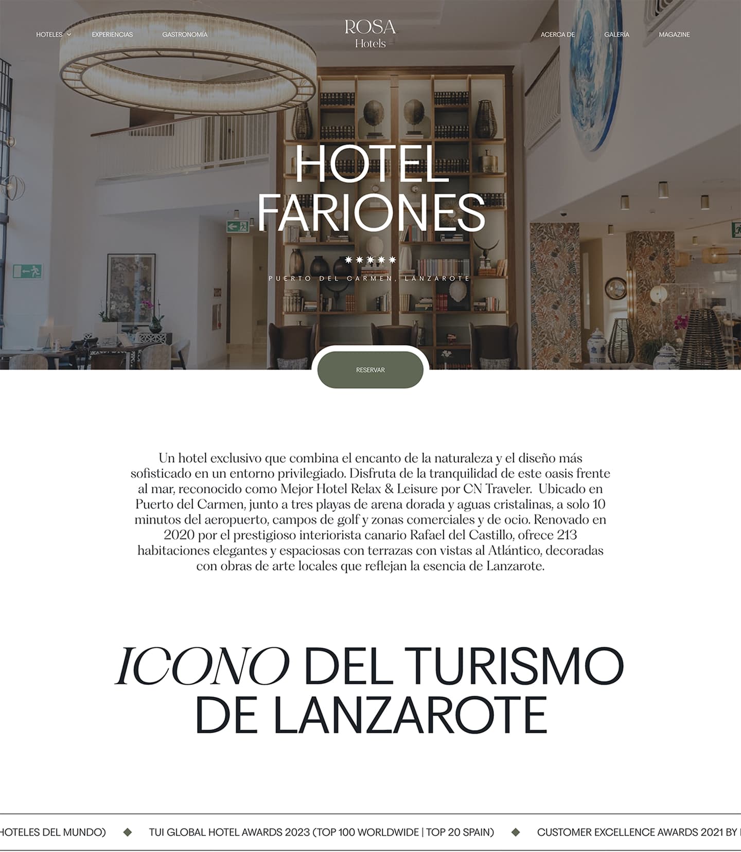 Rosa Hotels is the hotel division of Rosa Group, a benchmark for premium tourism in Lanzarote. It is part of an ecosystem of brands—Rosa Gastro, Rosa Origins, Rosa Boutiques, and Rosa Leisure & Wellness—that share the same standards of luxury and quality. The project focuses on Rosa Hotels, ensuring coherence with the parent brand without losing its own identity.