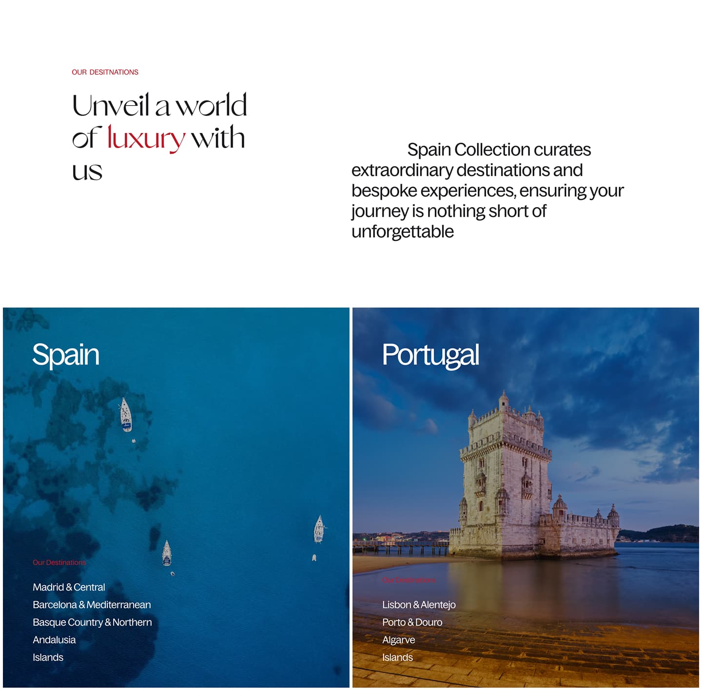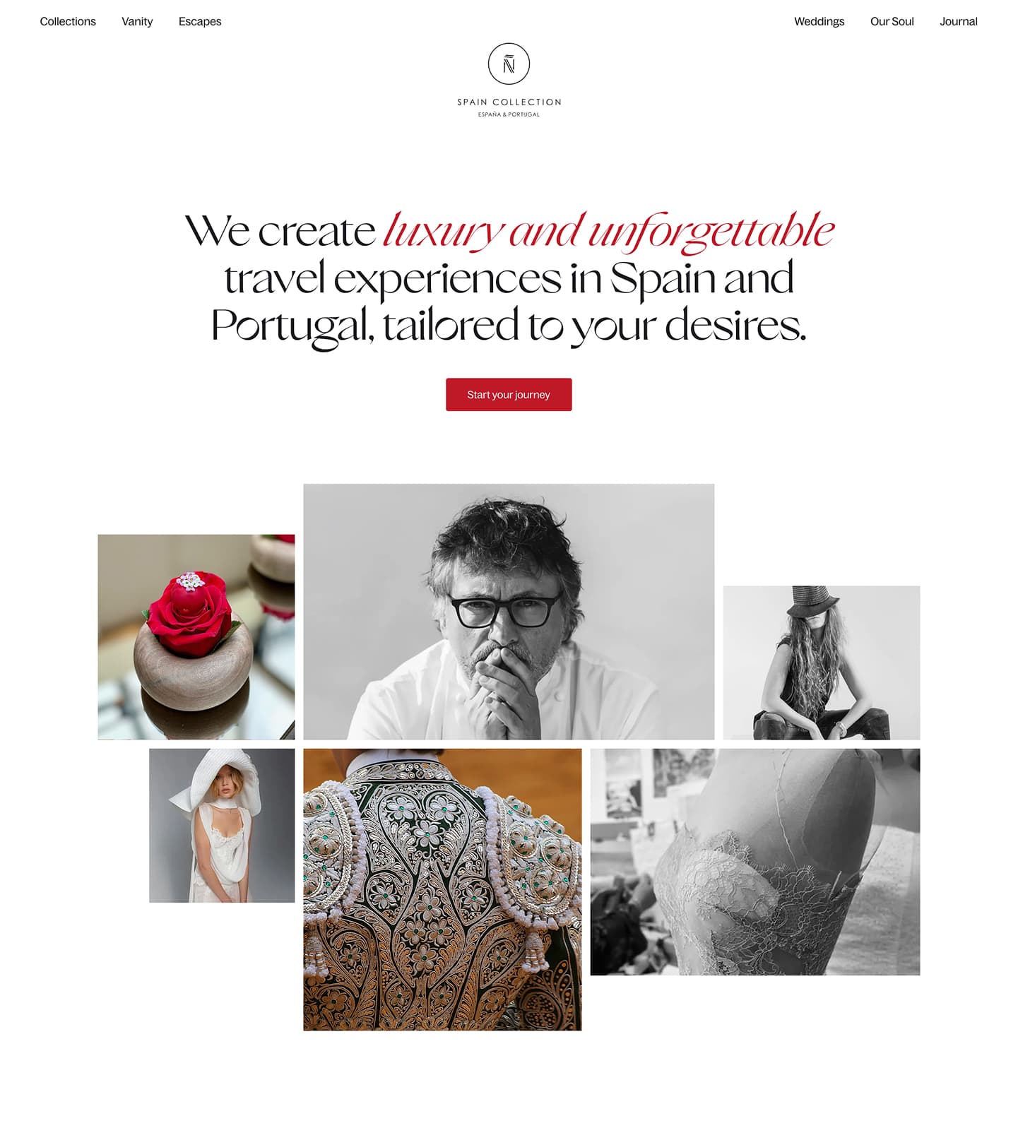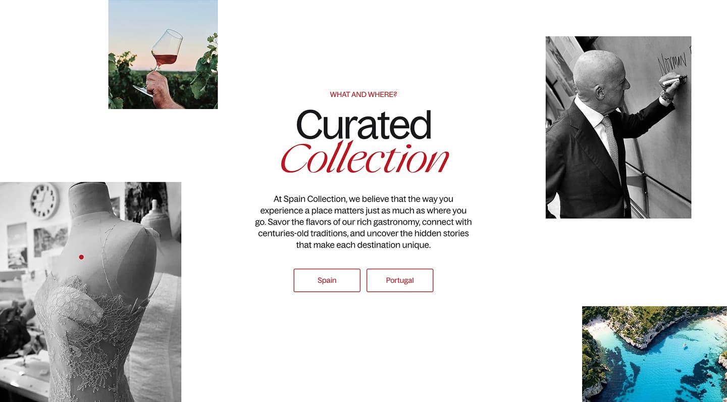Spain Collection is a luxury experience designer crafting exclusive trips, weddings, and stays across Spain and Portugal. With a hedonistic vision and a highly personalized approach —including tailor-made experiences with artists, Michelin-starred chefs, or fashion designers— it moves away from the traditional “agency” model to deliver truly memorable moments.