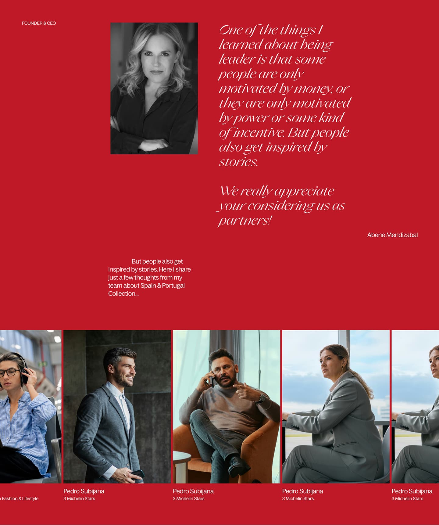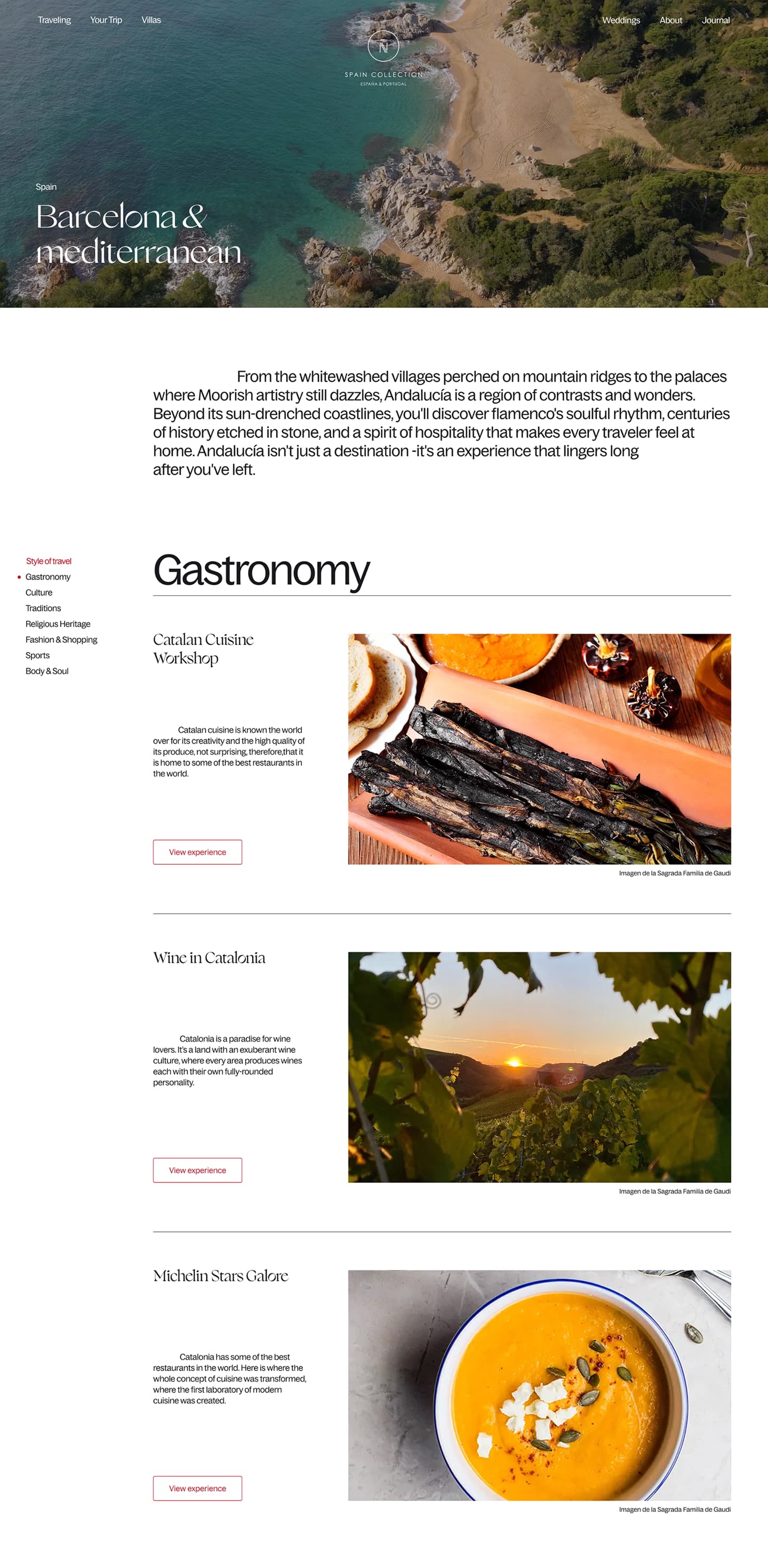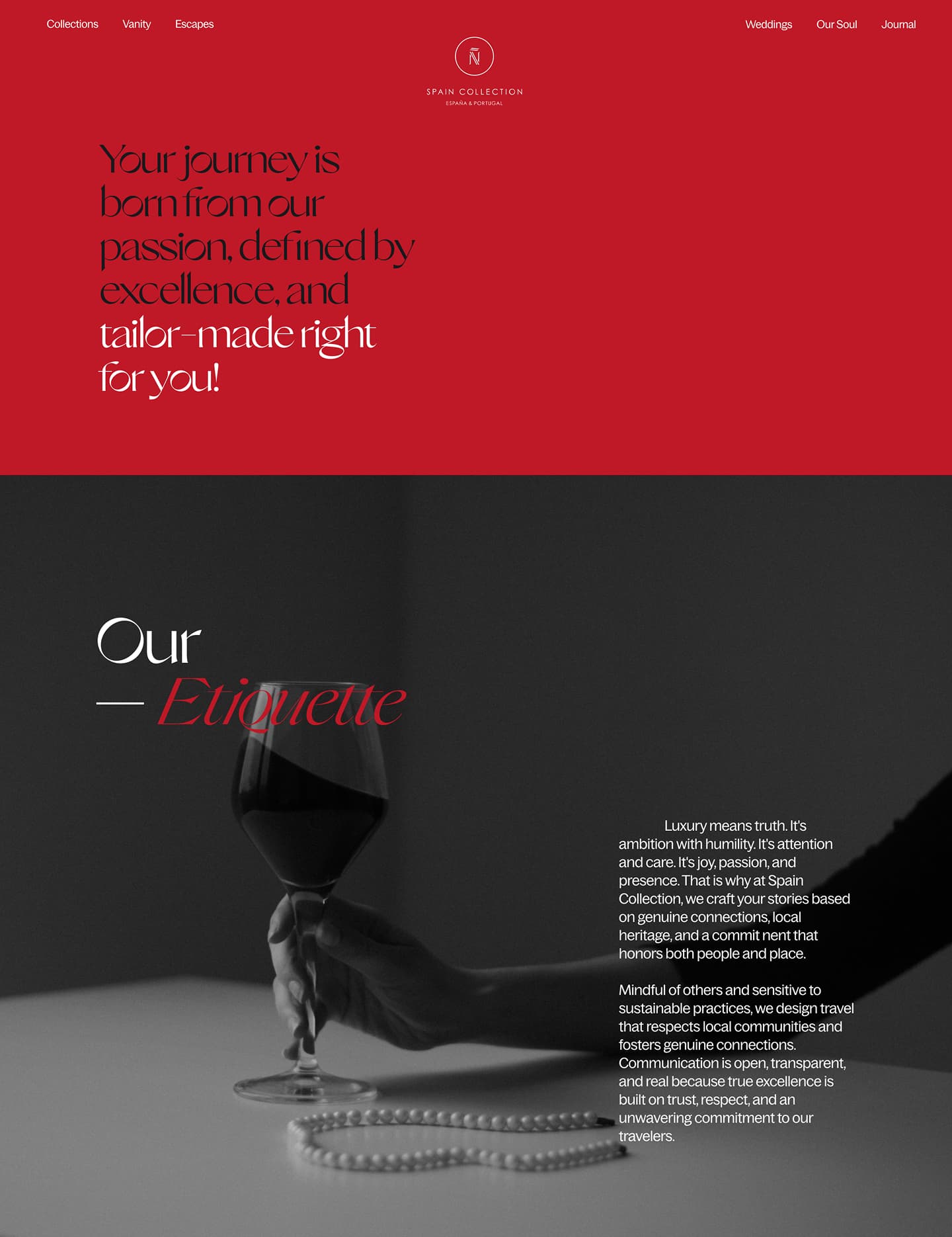 Spain Collection is a luxury experience designer crafting exclusive trips, weddings, and stays across Spain and Portugal. With a hedonistic vision and a highly personalized approach —including tailor-made experiences with artists, Michelin-starred chefs, or fashion designers— it moves away from the traditional “agency” model to deliver truly memorable moments.