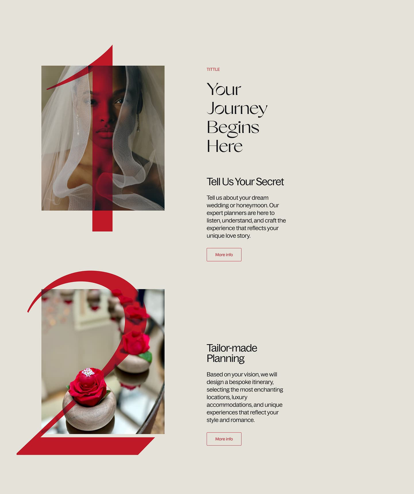 We structured content management with smart segmentation and interlinked sections so pages could feed one another (travel, weddings, stays, VIP experiences). We incorporated micro-interactions and sensory cues—such as interactive petals in the weddings section—to heighten emotional resonance and differentiation.