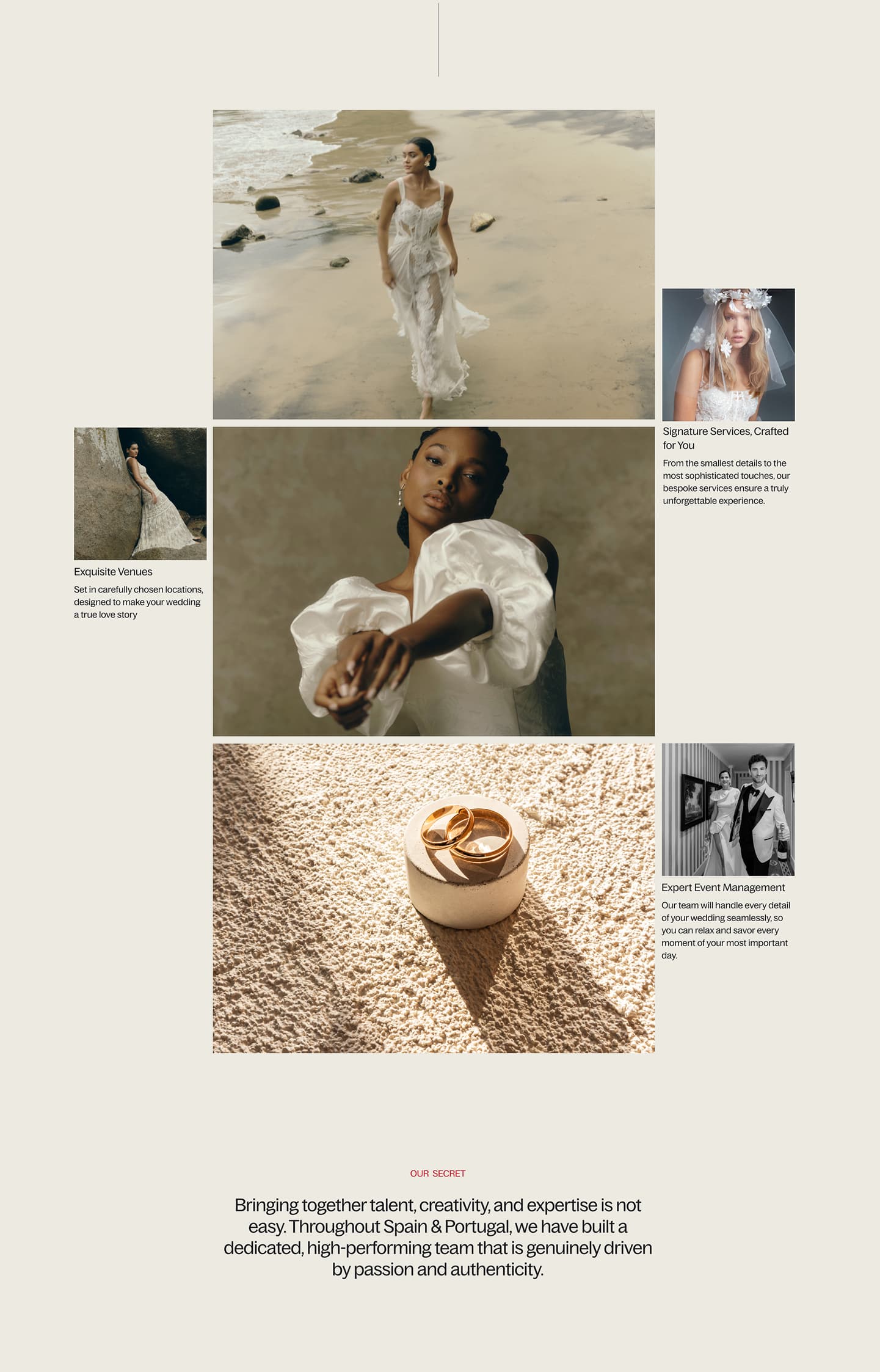 Align the brand narrative with the evolution of the business: integrate high-end weddings and bespoke experiences with VIPs while ensuring an impeccable user experience that precisely guides each audience to the right content and conversion.