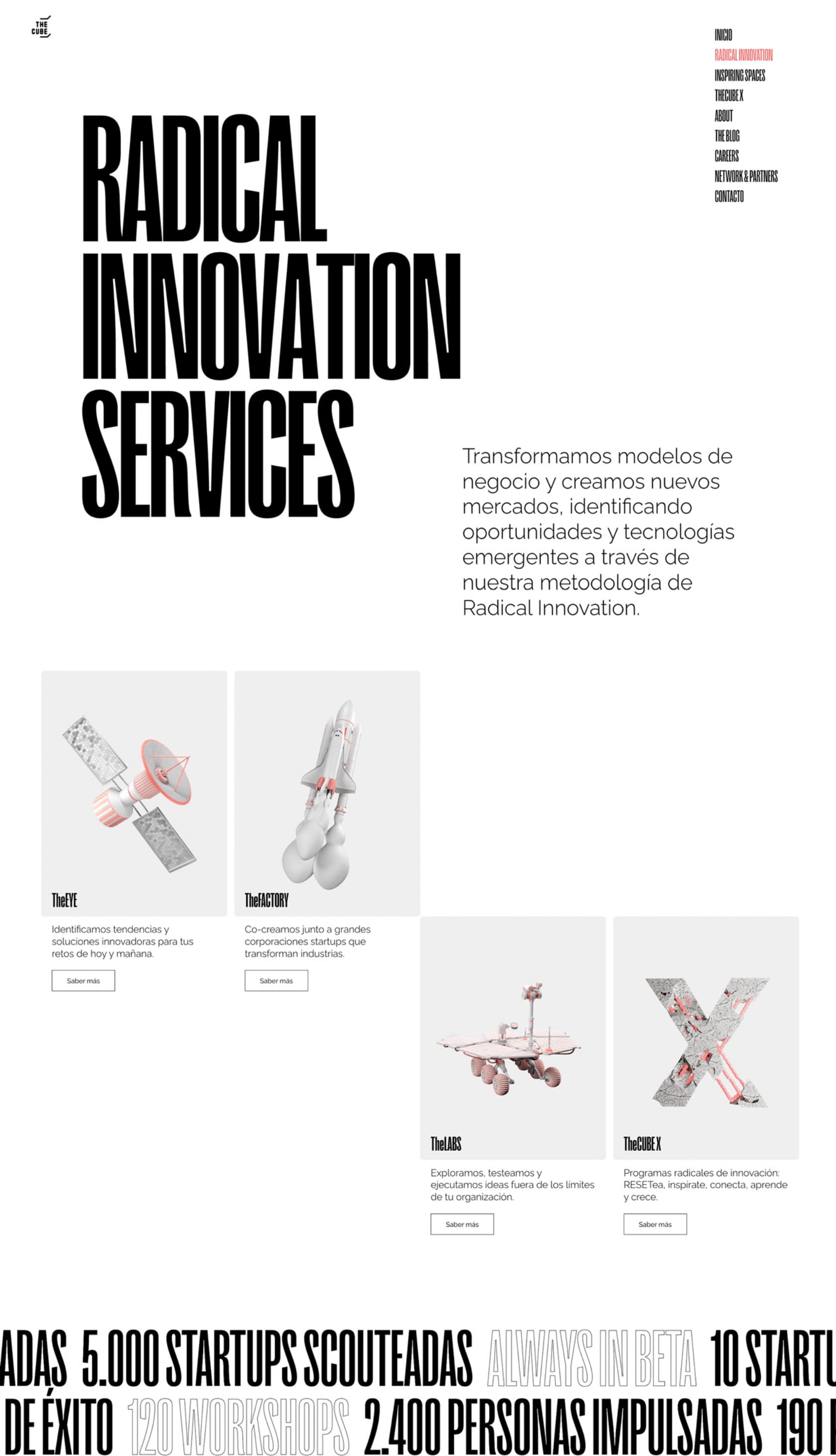 We developed a dynamic and innovative design focused on user experience. Using 3D elements and animations, we created an interactive environment that encouraged users to explore The Cube’s universe, reinforcing its identity with spatial graphics and movement.